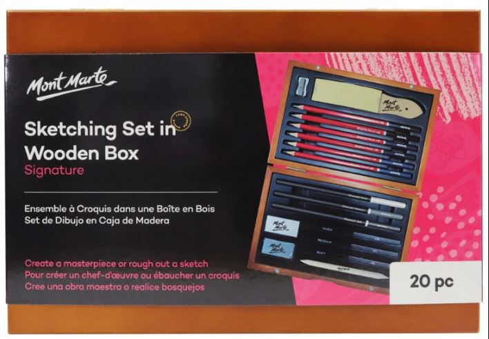Mont Marte Skizzen-Set, Nr. 0024, 20 Stück, Holzbox